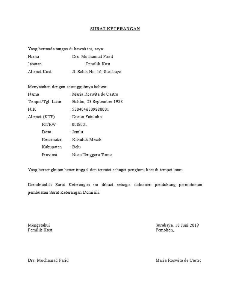 Contoh Surat Domisili Surabaya Nusagates