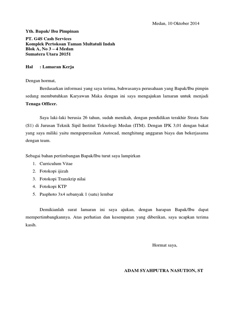 8 Contoh Surat Lamaran Kerja Ke Pt G4s 8000 Contoh Surat Lamaran Kerja Terbaik Dan Terbaru